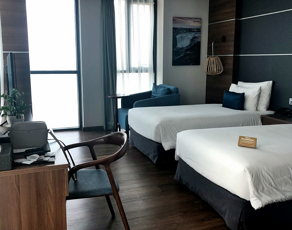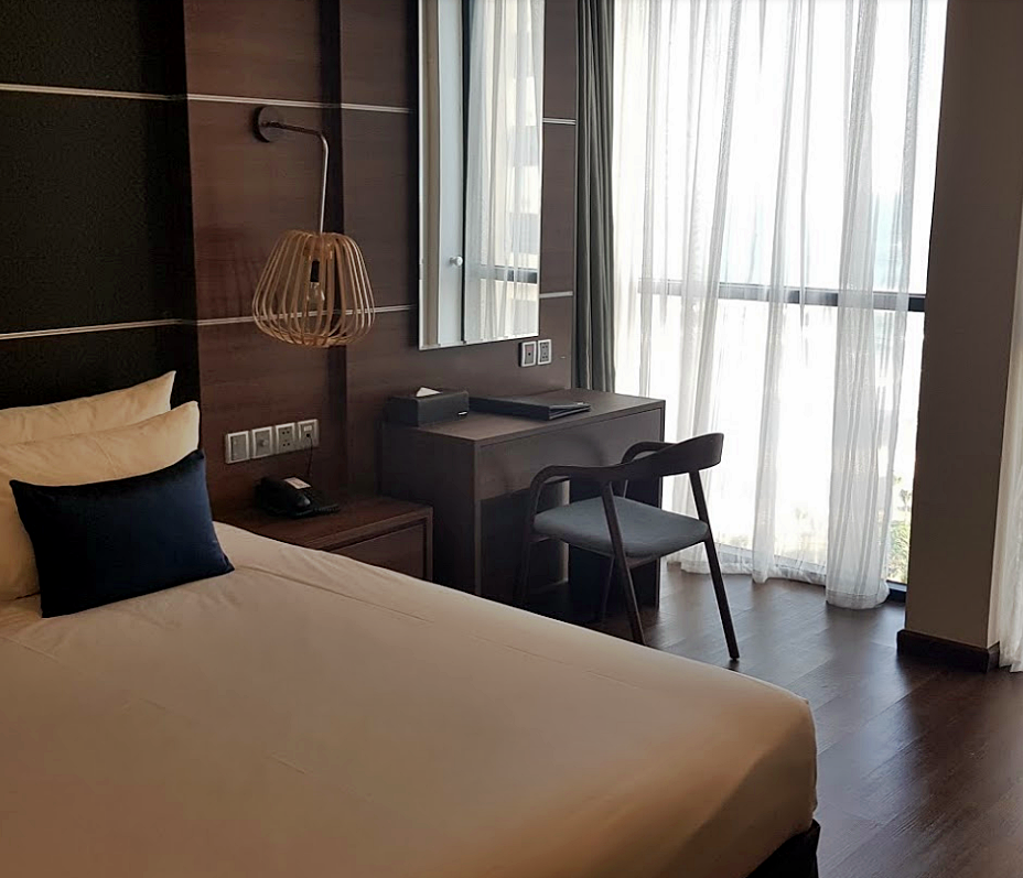 다낭 하이안 비치 호텔 체크인 진행하며 조식, 수영장, 스파 시설에 대한 안내문을 받을 수 있어요. 룸서비스를 요청할 때는 전화 0번을 누르면 되요. 오션뷰 객실을 예약한다면 룸 내부에서 다낭 미케비치를 한눈에 담을 수 있어요. 침대 쿠션도 괜찮은 편이고 베딩 퀄리티도 괜찮아 편안한 잠을 취할 수 있어요. 우드플로링에 그레이톤 포인트 인테리어로 고풍스러우면서도 세련된 방에서 지낼 수 있어요.