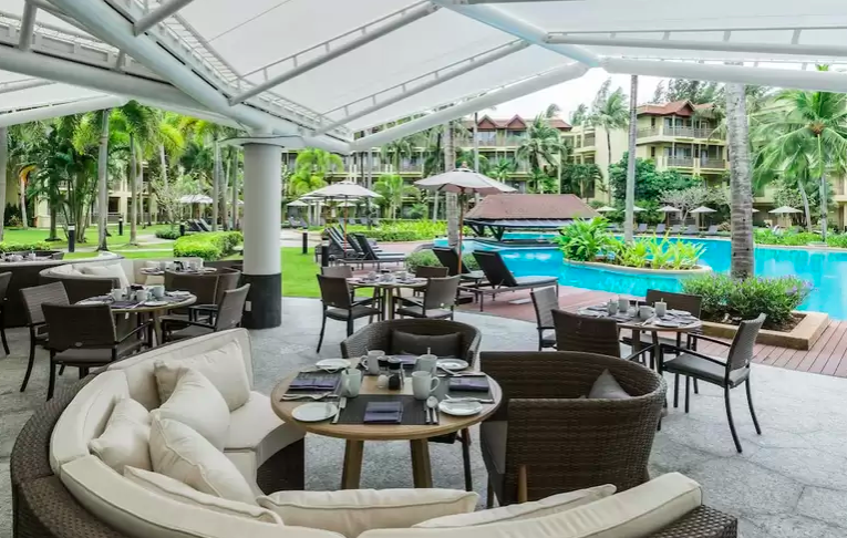 호텔 선택에 있어서 빼놓을 수 없는 부분이 조식인데 수영장 옆 레스토랑에서 즐기는 조식은 5성급 호텔의 요리 답게 근사한 아침을 먹을 수 있어요. 실내 식당에서 에어컨과 함께 조식을 먹을 수 있고, 야외에서 자연을 느끼며 먹는 아침을 선택할 수 있어요.